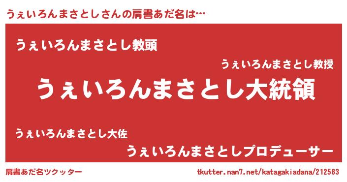 | 欧米人風あだ名 | 『うぇいろんまさとしクリステル』 |