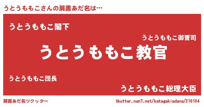 | 男性向けラノベタイトル風あだ名 | 『この素晴らしい世界にうとうももこを!』 |