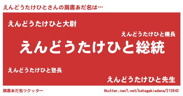 | 女子向けラノベタイトル風あだ名 | 『えんどうたけひとなんてお断りですっ。』 |