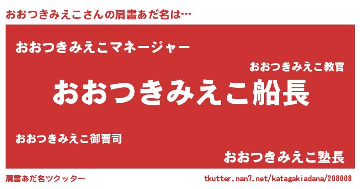 | 胡散臭い通販商品みたいなあだ名 | 『信頼と実績のサプリメント…その名も「おおつきみえこ」』 |