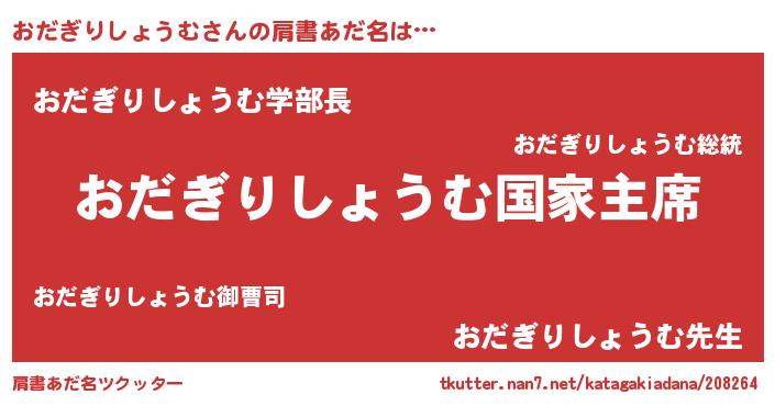 | 意味不明あだ名 | 『おだぎりしょうむフォーエバー』 |
