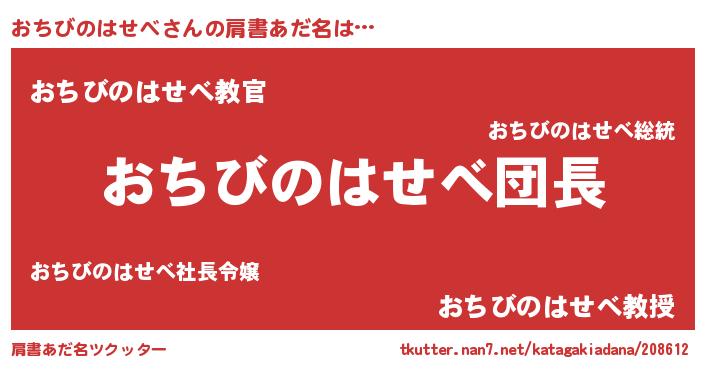 | 意味不明あだ名 | 『とにかく怪しいおちびのはせべ』 |