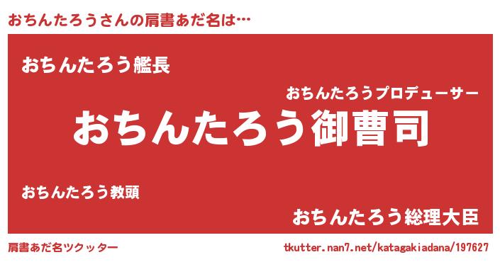 | 男性向けラノベタイトル風あだ名 | 『おちんたろうの憂鬱』 |