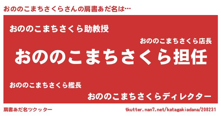 | 意味不明あだ名 | 『永久保存おののこまちさくら』 |