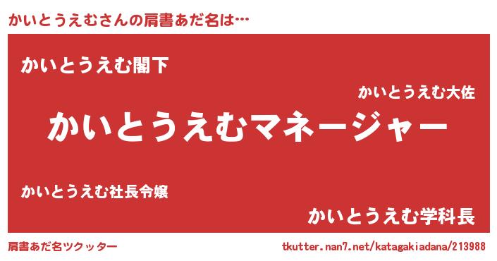| 意味不明あだ名 | 『自称かいとうえむ』 |