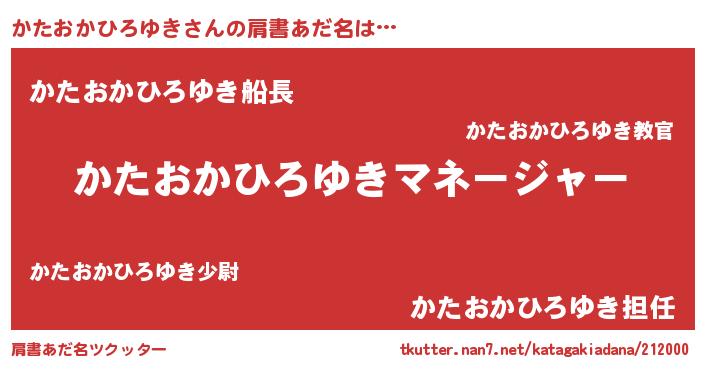 | 男性向けラノベタイトル風あだ名 | 『かたおかひろゆきに滅ぼされるだけの簡単なお仕事です』 |