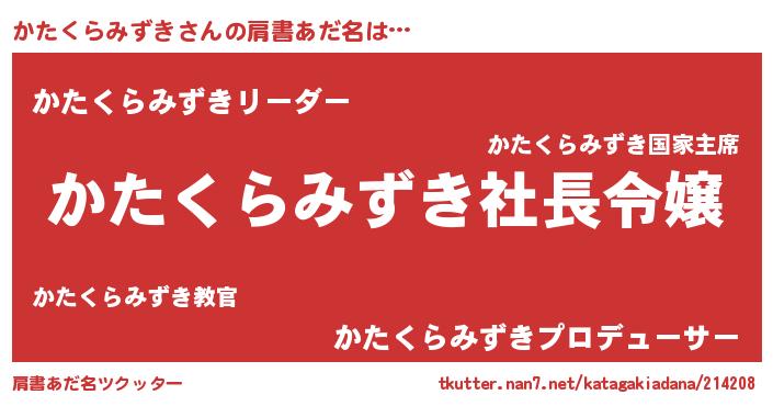 | 恥ずかしいあだ名 | 『プリティーかたくらみずき』『かたちん』 |