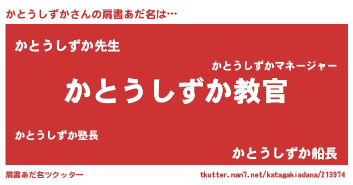 | ヘコむあだ名 | 『かとうしずか(遠い目)』『かとお』 |