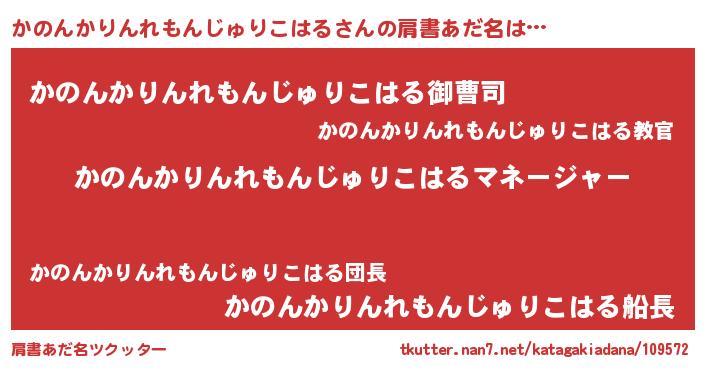 | 胡散臭い通販商品みたいなあだ名 | 『億万長者になれるブレスレット…その名も「かのんかりんれもんじゅりこはる」』 |