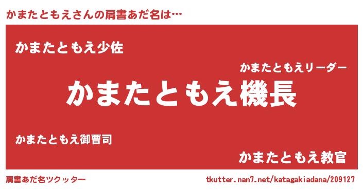 | 料理風あだ名 | 『かまたともえの炊き込みご飯』 |