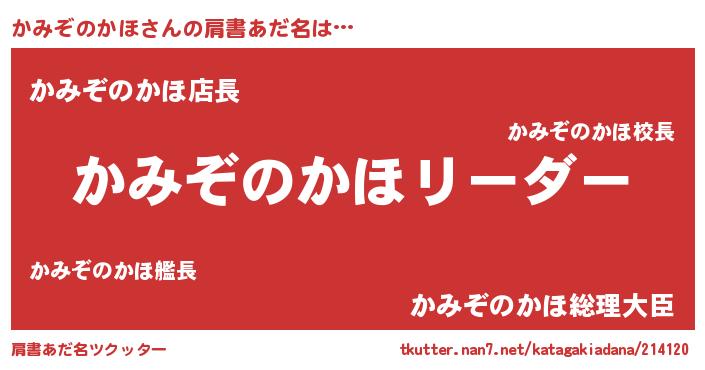 | ヒーロー風カッコイイあだ名 | 『暗黒騎士カミ』『スーパーカミゾノカホ』 |