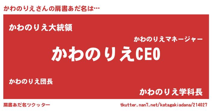 | ファンタジー風あだ名 | 『カワフェル』『エターナルカワノリエー』 |