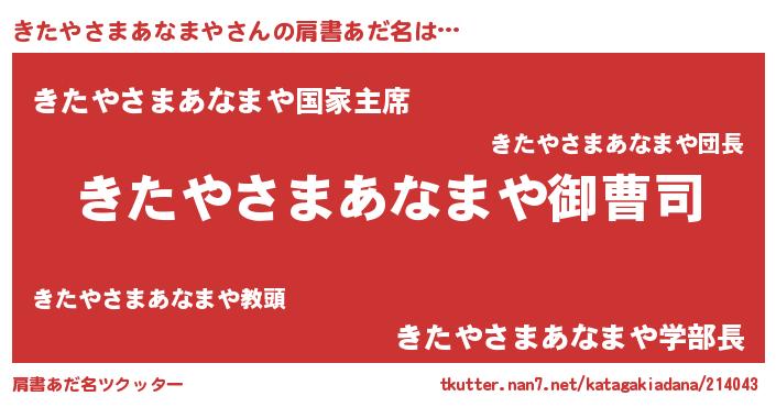 | 男性向けラノベタイトル風あだ名 | 『きたやさまあなまやの憂鬱』 |