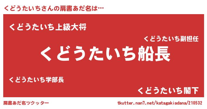 | 男性向けラノベタイトル風あだ名 | 『うちのくどうたいちが世界を掌握している!』 |