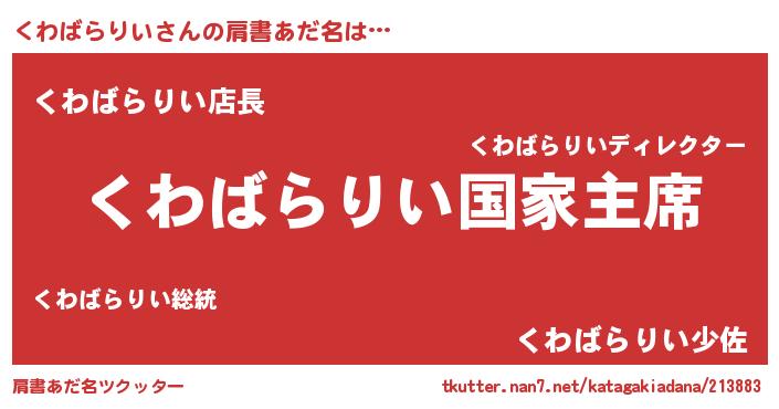 | 欧米人風あだ名 | 『くわばらりいクリステル』 |