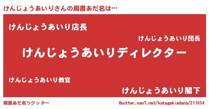 | 欧米人風あだ名 | 『アンジェラ・けんじょうあいり』 |