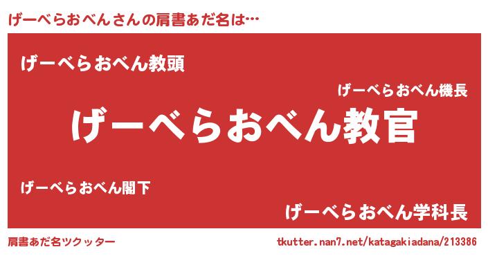 | 意味不明あだ名 | 『住所不定無職げーべらおべん(3歳)』 |