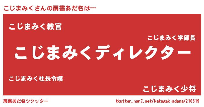 | ヒーロー風カッコイイあだ名 | 『仮面コジダー』『慈愛の使者こじまみく』 |