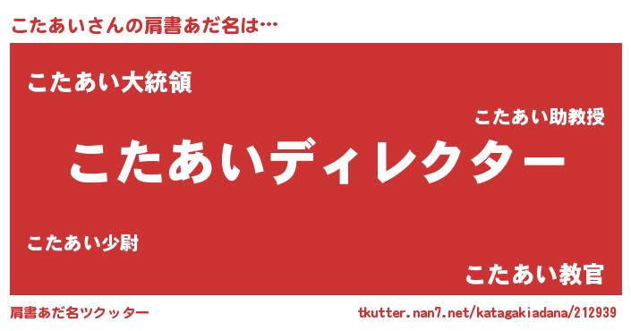 | 男性向けラノベタイトル風あだ名 | 『はたらくこたあいさま!』 |
