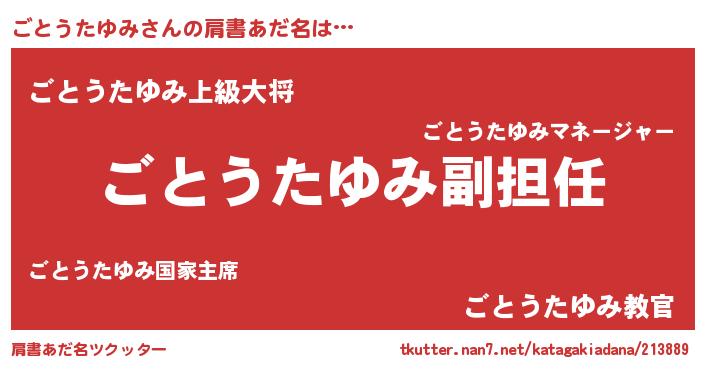 | 男性向けラノベタイトル風あだ名 | 『ごとうたゆみという概念が存在しない退屈な世界 』 |