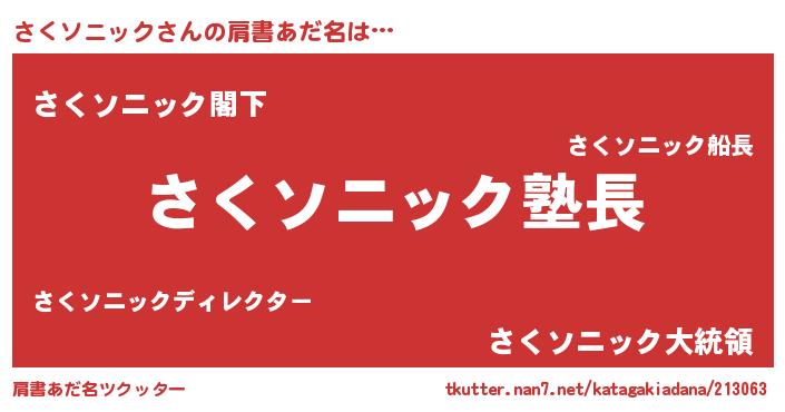 | 意味不明あだ名 | 『とにかく怪しいさくソニック』 |