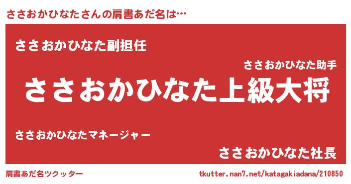 | ヘコむあだ名 | 『ささおかひなた(遠い目)』『ささっふぃ~』 |