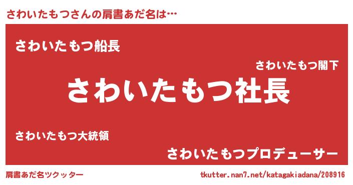 | 男性向けラノベタイトル風あだ名 | 『さわいたもつの憂鬱』 |