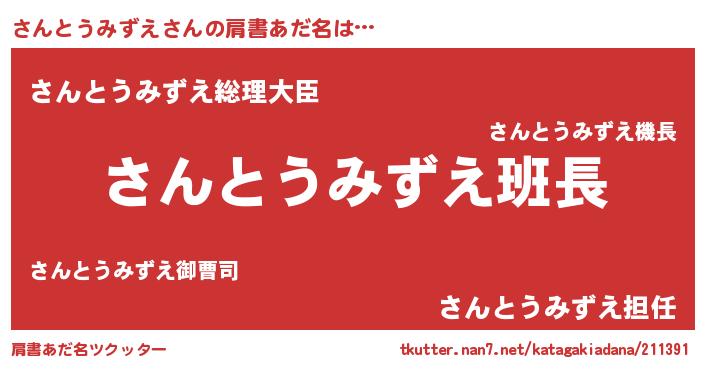 | 意味不明あだ名 | 『とにかく怪しいさんとうみずえ』 |