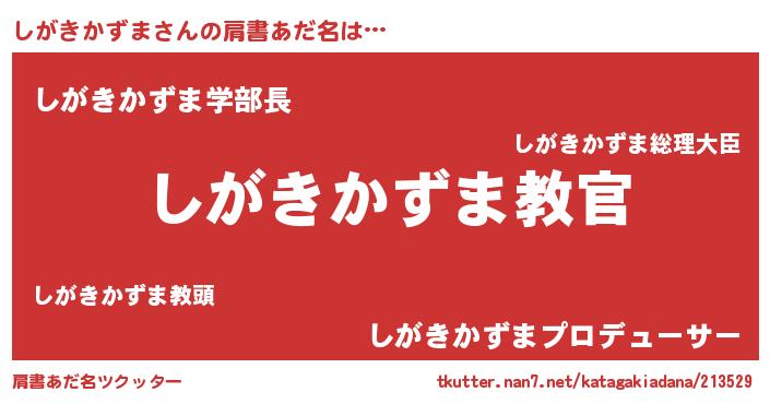 | 男性向けラノベタイトル風あだ名 | 『この素晴らしい世界にしがきかずまを!』 |