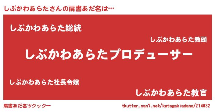 | 意味不明あだ名 | 『自称しぶかわあらた』 |