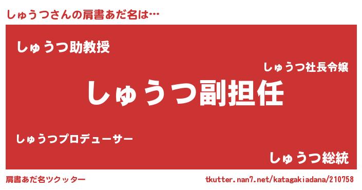 | ヘコむあだ名 | 『しゅうつ(遠い目)』『しゅふぇ~』 |