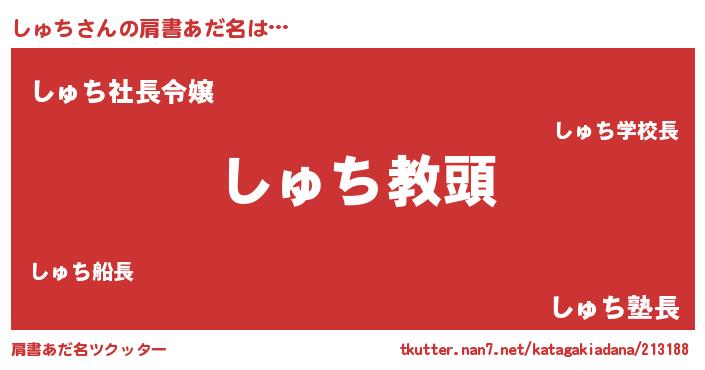 | 男性向けラノベタイトル風あだ名 | 『しゅちという概念が存在しない退屈な世界 』 |
