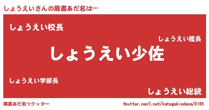 | 男性向けラノベタイトル風あだ名 | 『しょうえい~年齢イコール彼女いない歴の魔法使い~』 |