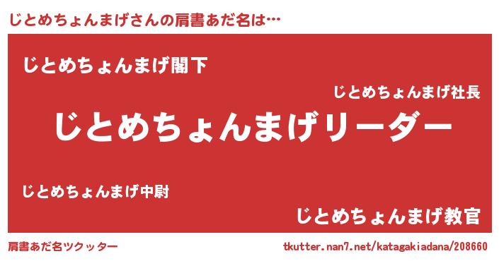 | 男性向けラノベタイトル風あだ名 | 『ダンジョンにじとめちょんまげを求めるのは間違っているだろうか』 |