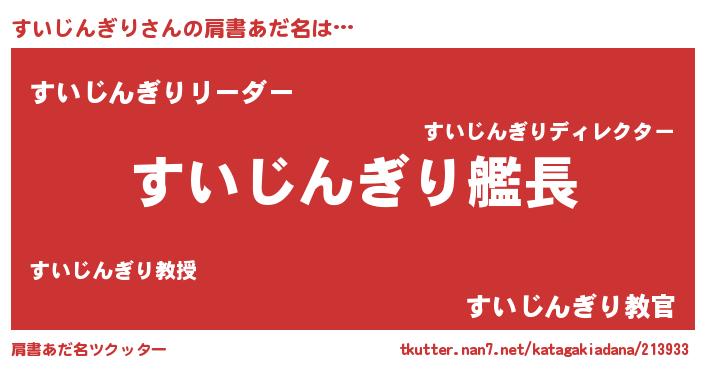 | 男性向けラノベタイトル風あだ名 | 『うちのすいじんぎりが世界を掌握している!』 |
