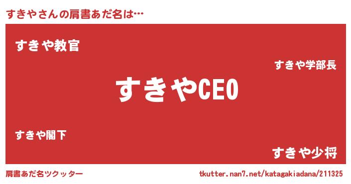 | 女子向けラノベタイトル風あだ名 | 『すきや姫と円卓の騎士』『闇のすきや』 |