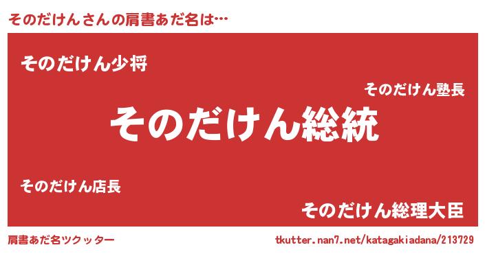 | 男性向けラノベタイトル風あだ名 | 『Re:そのだけんから始める異世界生活』 |