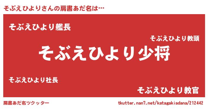 | 男性向けラノベタイトル風あだ名 | 『そぶえひより~年齢イコール彼女いない歴の魔法使い~』 |