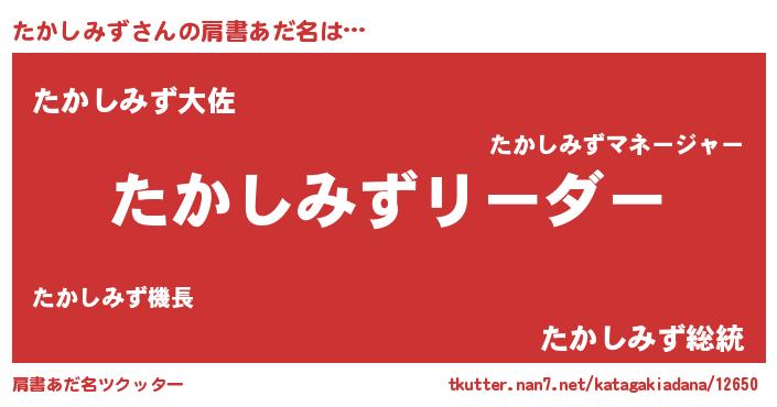| 意味不明あだ名 | 『とにかく怪しいたかしみず』 |