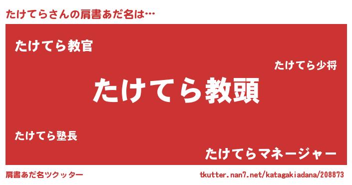 | ヒーロー風カッコイイあだ名 | 『ネオタケテラ』『仮面タケダー』 |