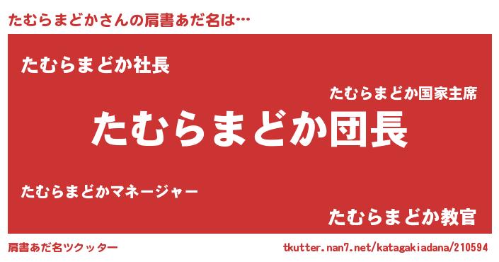 | 男性向けラノベタイトル風あだ名 | 『たむらまどかの嫁は女の子じゃないと思った?』 |