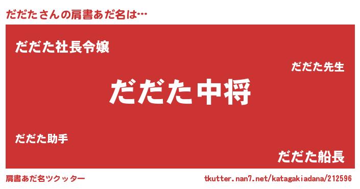 | 男性向けラノベタイトル風あだ名 | 『ダダタスレイヤー』『だだたの憂鬱』 |