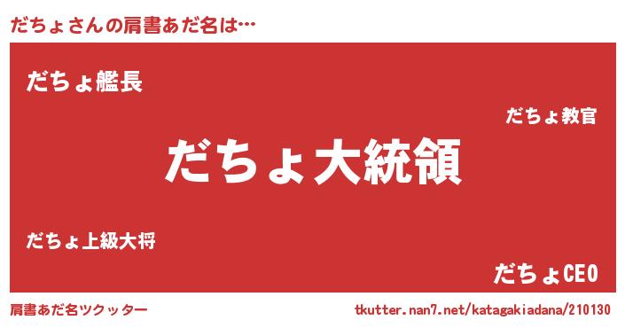 | 女子向けラノベタイトル風あだ名 | 『だちょの雑貨屋さん』 |