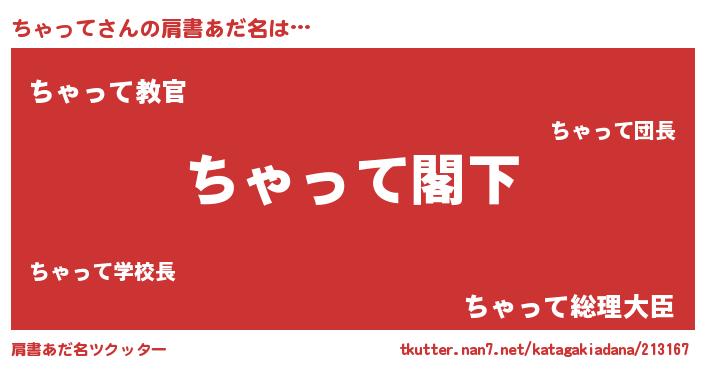 | 意味不明あだ名 | 『自称ちゃって』『ちゃってフォーエバー』 |