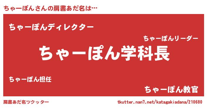 | ヘコむあだ名 | 『ちゃっちょ』『ちゃーぽん(笑)』 |