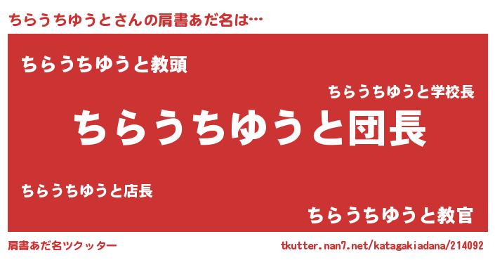 | 意味不明あだ名 | 『とにかく怪しいちらうちゆうと』 |