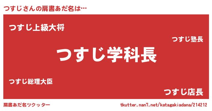 | 女子向けラノベタイトル風あだ名 | 『死神つすじの再婚』『つすじ様がみてる』 |