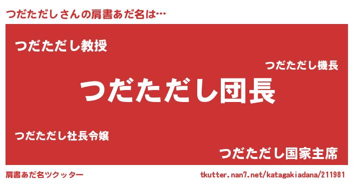 | ポケモン風あだ名 | 『ヒツダタダシ』『ツックウザ』 |
