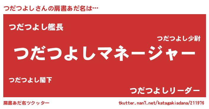 | 男性向けラノベタイトル風あだ名 | 『つだつよしに滅ぼされるだけの簡単なお仕事です』 |