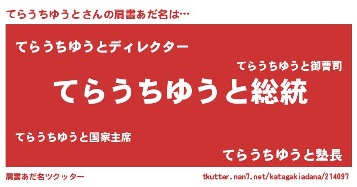 | 意味不明あだ名 | 『自称てらうちゆうと』 |